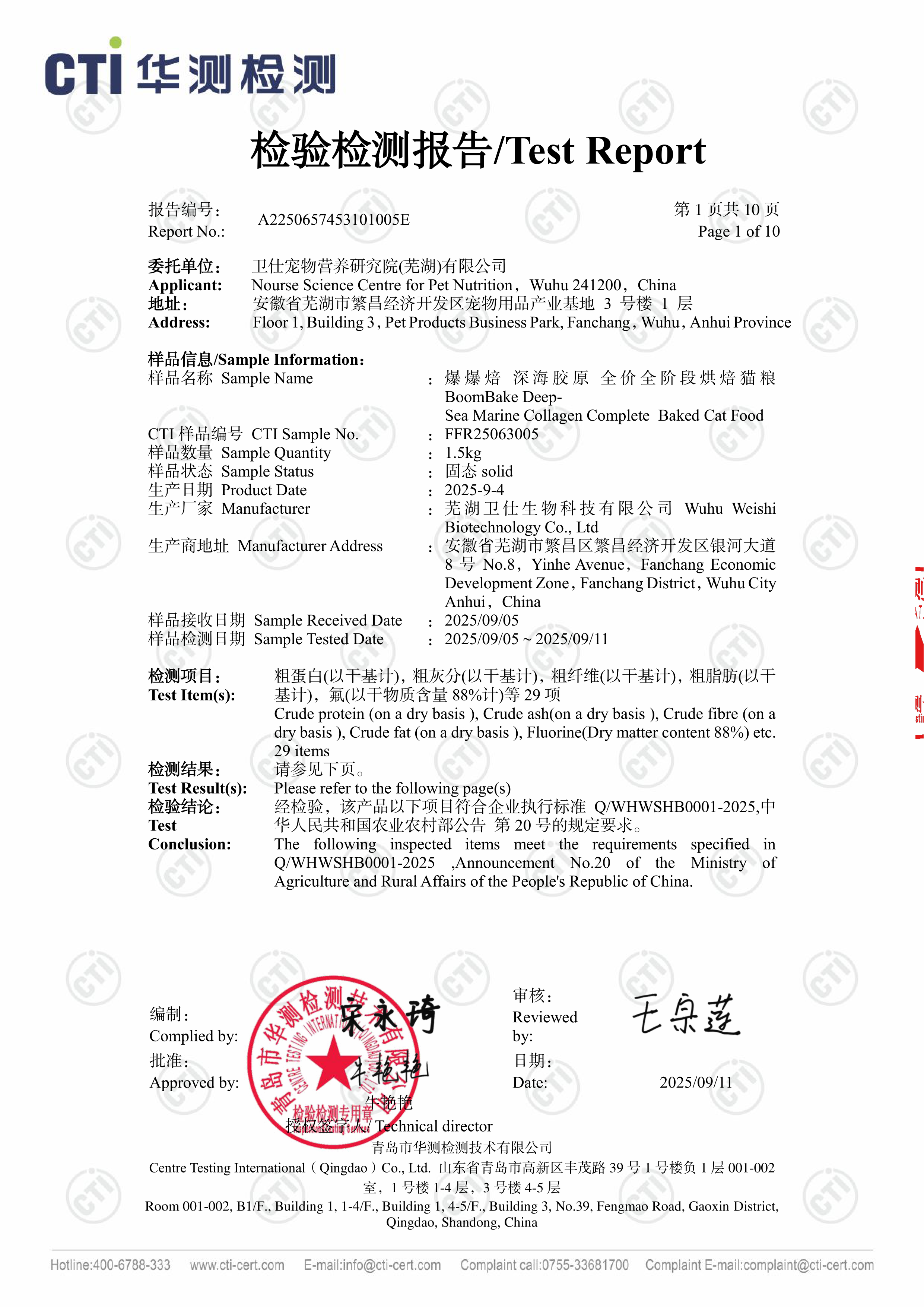 卫仕主粮质检报告 > 2025 09 04